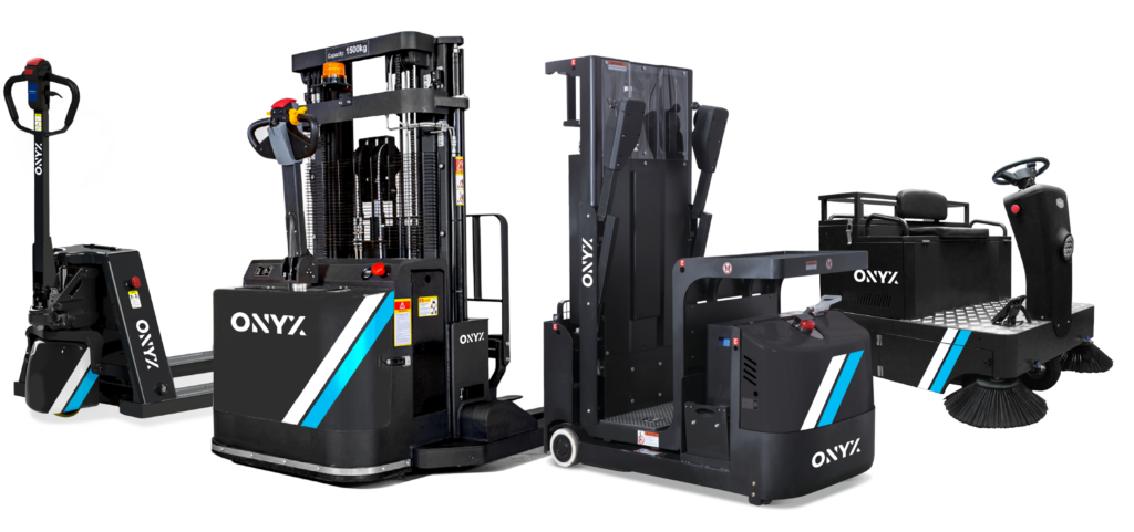 Built to perform, built to last. Product Range Pallet Stackers Order Pickers ONYX in action. ONYX products All Filter Electric Pallet Truck Electric Order Picker Medium Order Picker Order Picking Truck 0.7T Order Picking Truck 1.0T Walkie Reach Stacker Electric Pallet Stacker Electric Driving Sweeper